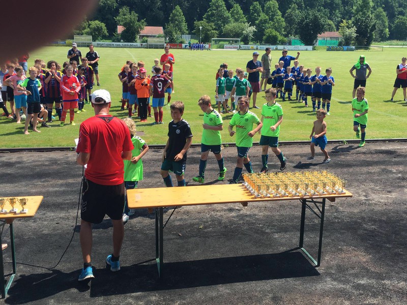 Bei hoch sommerlichen Temperaturen landeten unsere U9-Schützlinge einen Überraschungsturniersieg in Tüssling! Überraschend darum, da aufgrund Krankheit und Verletzung unser Team ohne Ersatzspieler zum Turnier antrat. Und weil dass nicht genug war, mussten wir das komplette vorletzte Spiel des Turniers sogar in Unterzahl bestreiten, da Leon Laufenböck mit Schwindel und Übelkeit nicht weiter machen konnte. Gott sei Dank konnten wir uns im letzten Spiel noch mit unserem F2-Akteur Filip Cumbo verstärken, so dass wir wenigstens wieder ein komplettes Team zum Abschluss stellen konnten! Ohne Niederlage holten sich die Jungs den verdienten 1. Platz!