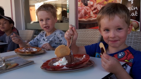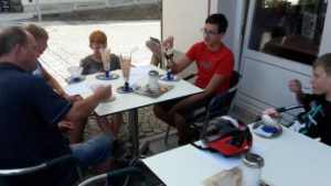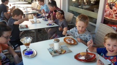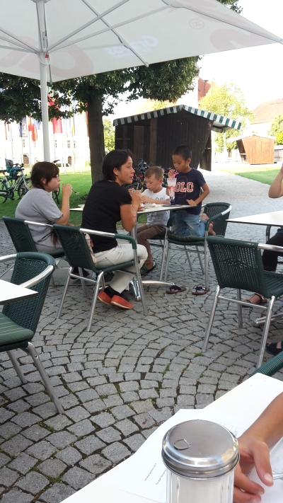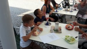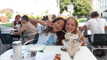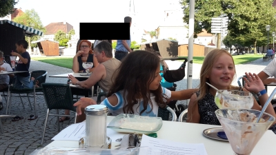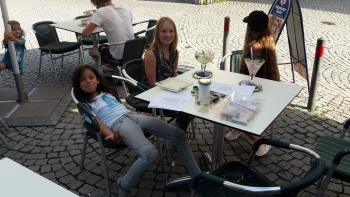 Natürlich beim sommerlichen Eisessen! In lockerer Runde und noch lockerem Plausch genossen die Kid´s und die Betreuer die kalten Köstlichkeiten am Kapellplatz.