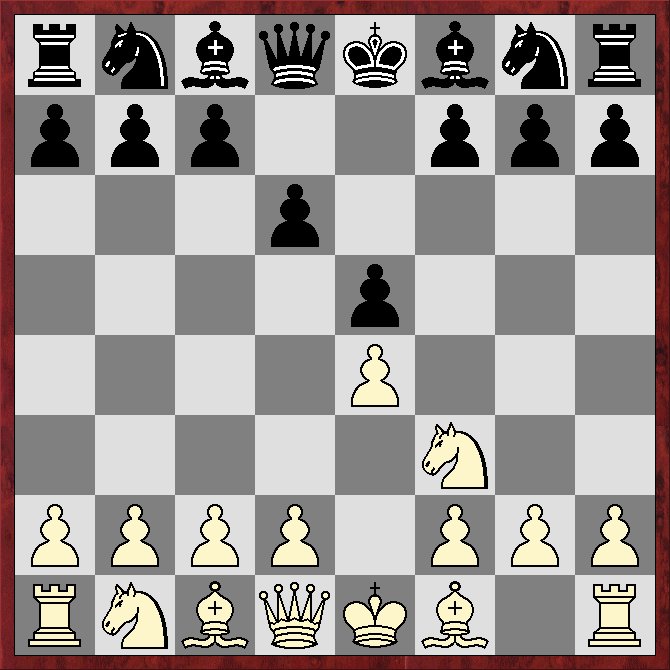 - Sc3 – d5 (auch gleich f6 wäre möglich) f7 – f6
