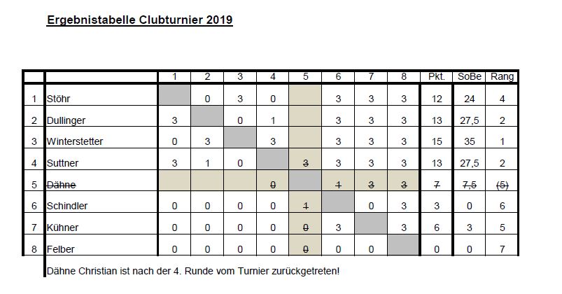 Ergebnisse Clubturnier 2018/19