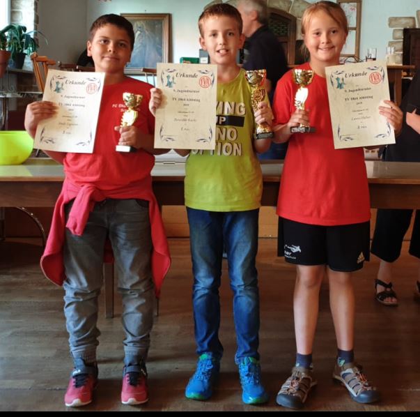 Gewinner der Altersklasse U-10 (vlnr) : Lupusor,Andy-Timotei (FC Ergolding), Racky,Benedikt (SK Wasserburg), Huber,Laura (FC Ergolding)