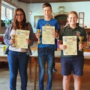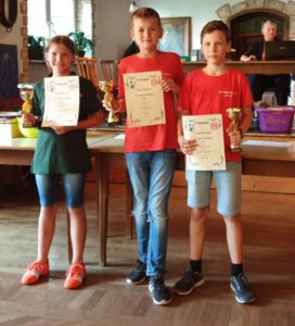Gewinner der Altersklasse U-14 (vlnr): Racky,Selina (SK Wasserburg), Vollmar,Timo (BSV 63 Chemie Weißensee e.V. (Berlin)), Birchinger,Helene (SC Ortenburg)
