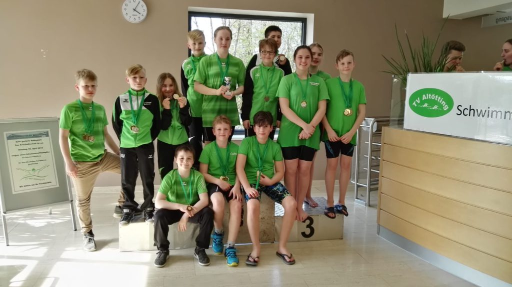 Die diesjährige 111. Kreis-und Kreisjahrgansmeisterschaft fand letztes Wochenende in Waldkraiburg statt. Aus der Schwimmabteilung Altötting waren 14 Schwimmerinnen und Schwimmer der ersten drei Mannschaften am Start. Gegen große Konkurrenz (insgesamt 200 Teilnehmer) konnten sich alle Altöttinger gut durchsetzen und es wurden insgesamt 11 Podestplätze (5mal Gold, 2mal Silber, 4mal Bronze) erreicht. Jeweils zweifacher Kreismeister dürfen sich Benedikt Thanner (Jahrgang 2003) und Daniel Verebi (Jahrgang 2009) nennen. Eine weitere Goldmedaille ging auf das Konto von Erwin Karabelesch (Jahrgang 2006). Am Ende des Wettkampfes fand die 6x50m Freistil Staffel statt. Hier verpasste das Altöttinger Team in der Aufstellung: Inga Zander, Daniel Verebi, Isabella Walbert, Sophie Otto, Erwin Karabelesch und Lilly Kraus mit einem vierten Platz das Treppchen nur knapp. Nächstes Wochenende steht bereits der nächste Wettkampf, das Int. Langstreckenschwimmen in Rosenheim, an.