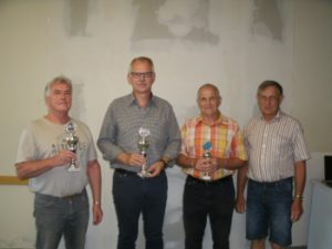 Siegerehrung Clubturnier v.l.n.r.: Helmut Stöhr, Klaus Dullinger, Abt.leiter Hans Suttner (Erich Kühner fehlt)