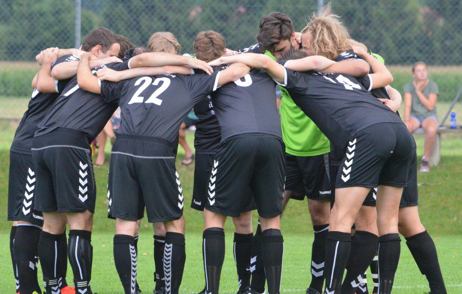 Die strahlenden Altöttinger Tischtennis-Stadtmeister 2017 Wolfgang Sellner und Abteilungsleiter Werner Riedl(vl): Christian Schmid, Florian Jordan, Ricardo Antwerpen und Simon Schreieder