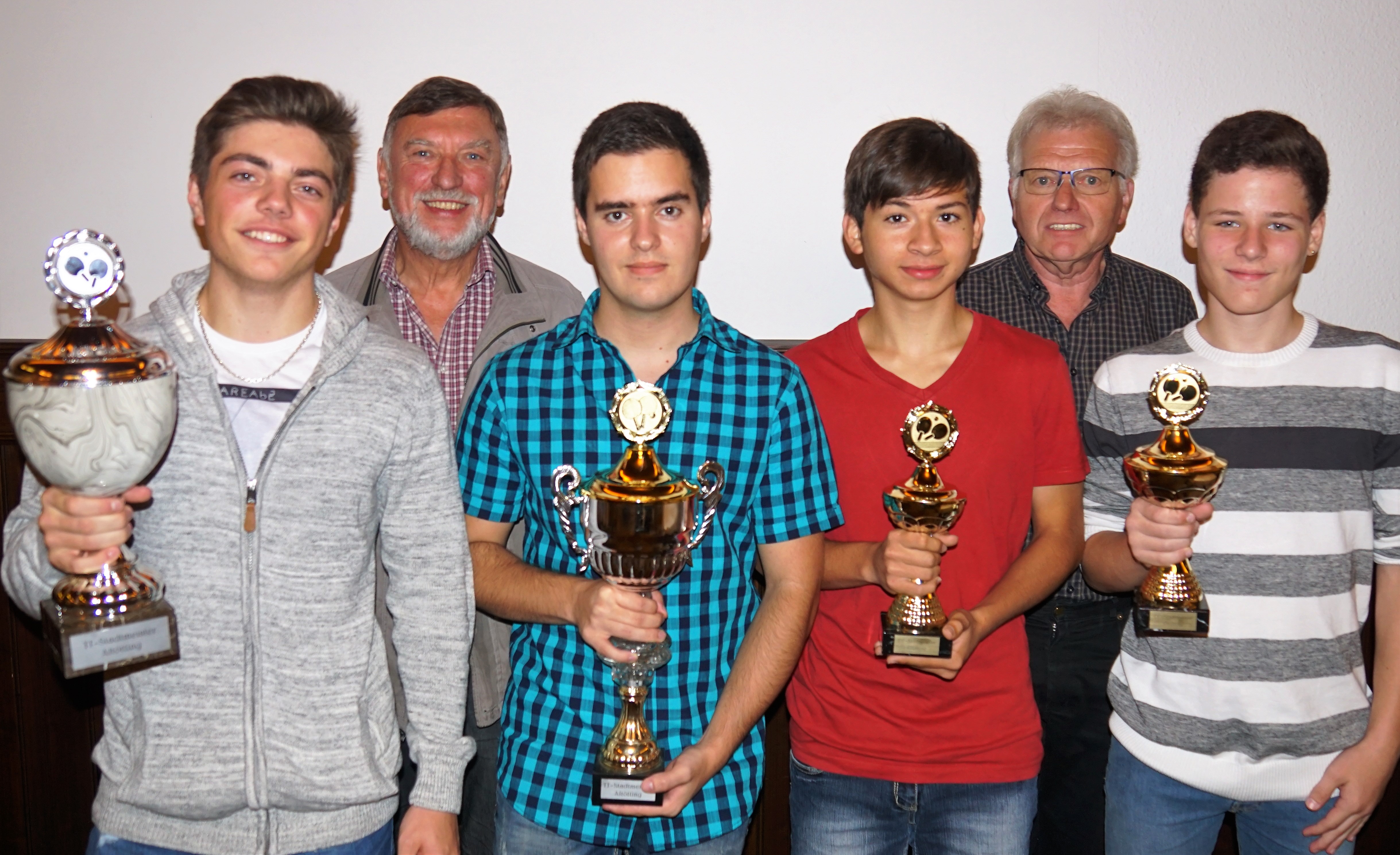 Bei der Siegerehrung am Samstagabend im Graminger Weißbräu kürte Tischtennis-Abteilungsleiter Werner Riedl den 46. Altöttinger Stadtmeister Florian Jordan(Foto, 2.vl). Der junge Altöttinger spielt in der ersten Mannschaft des TVA in der Kreisliga und konnte sich im Finale gegen Christian Zieglmaier klar mit 3:0 durchsetzen. Norbert Kneissl konnte mit seiner Familie Astrid, Marina und Julian, die ebenfalls schon allesamt schon Stadtmeister waren, aufgrund eines Trauerfalls nicht zur Titelverteidigung antreten. Wie Abteilungsleiter Riedl bedauerte, sei auch dies ein Grund für die vergleichsweise schlechte Beteiligung in diesem Jahr: nach erfreulichen 41 Teilnehmern im vergangenen Jahr, mangelte es in diesem Jahr vor Allem an nicht dem Verein angehörenden Herausforderern. Die Damenwertungen mussten aufgrund zu weniger Meldungen gar komplett entfallen.