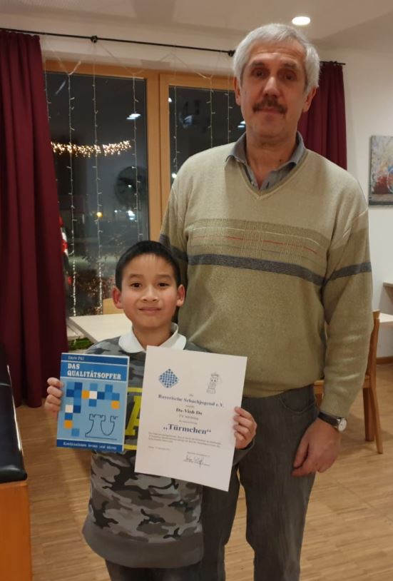 . Die Auszeichnung “Türmchen” mit einem Sonderpreis erhielt im Rahmen der Feier Da-Vinh Do. Die Auszeichnung wird von der Bayerischen Schachjugend für die Teilnahme an Turnieren und den Nachweis von Kenntnissen im Schachspiel verliehen.
