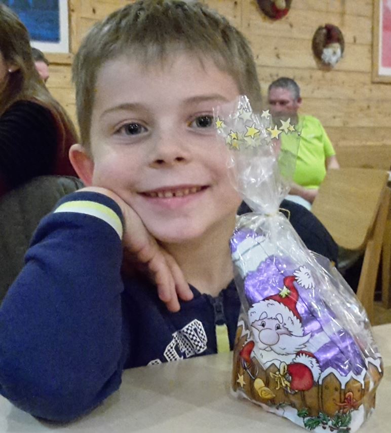 Leider war der obligatorische Nikolaus ausgefallen: er war erkrankt! (Man sieht, auch Himmelsboten sind nicht vor Krankheit gefeit!). Dennoch brachte er durch seine Engel noch die Päckchen und seine Verse in die Niederungen, so dass Jutta Stadler für ihn einspringen und die guten, wie die schlechten Taten im bayerischen Textvers vortragen durfte.