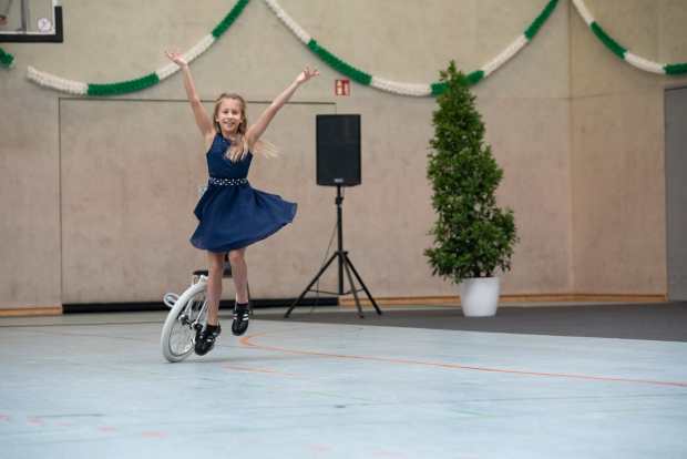 Am vergangenen Wochenende (15.11.-17.11) wurde in Nümbrecht die Deutsche Meisterschaft im Einrad Freestyle ausgetragen. Knapp 300 Teilnehmer-/-innen waren gemeldet. Leider mussten verletzungsbedingt vorab 3 Starts des Altöttinger Teams abgesagt werden. Die 4 gezeigten Performances waren aber äußerst erfolgreich. Im Einzel ging Eva Plininger (11) mit ihrem Kürthema „Light up the Sky“ an den Start und lag sowohl in der Performancewertung als auch in der Technik ganz vorne. Sie freute sich als jüngste Starterin im Junior Expert über ihren ersten „Deutschen Juniorenmeistertitel“ in der Einzelkür. Leider fiel ihre Teamkollegin Sarah Rieder verletzungsbedingt für Einzel-, Paarkür und Kleingruppe aus.